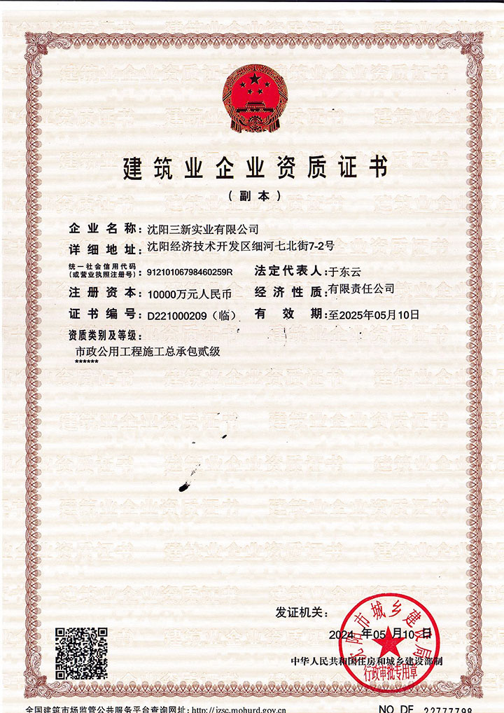 建筑工程施工總承包壹級(jí)、鋼結(jié)構(gòu)工程專業(yè)承包壹級(jí)