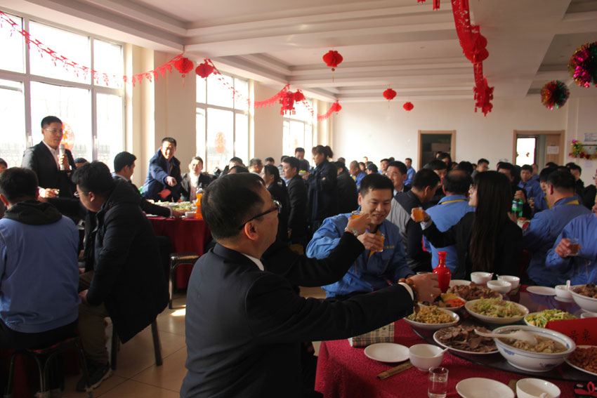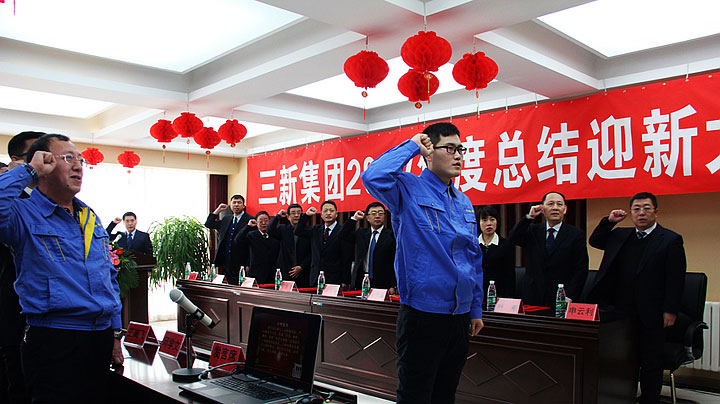 新年晚宴上全體同仁為新的一年舉杯同慶,共同祝愿三新的明天會(huì)更好。