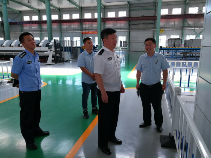 720日下午,開發(fā)區(qū)公安分局魏智勇局長及紀檢室主任周剛帶隊在公司副總經(jīng)理吳龍陪同下,對我公司生產(chǎn)車間進行走訪。魏局長及周主任參觀了公司車間和裝備,對我公司的產(chǎn)品以及公司在疫情期間的生產(chǎn)和經(jīng)營情況給予了高度評價。