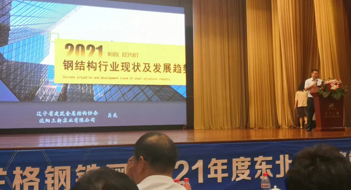 在主題演講環(huán)節(jié),三新集團副總經(jīng)理兼遼寧省建筑金屬結(jié)構(gòu)協(xié)會副秘書長吳龍就“2021鋼結(jié)構(gòu)行業(yè)現(xiàn)狀及發(fā)展趨勢”發(fā)表了精彩演講。他從建筑鋼結(jié)構(gòu)企業(yè)區(qū)域分布,遼寧地區(qū)鋼結(jié)構(gòu)行業(yè)現(xiàn)狀和發(fā)展趨勢等方面進行了詳細(xì)介紹。