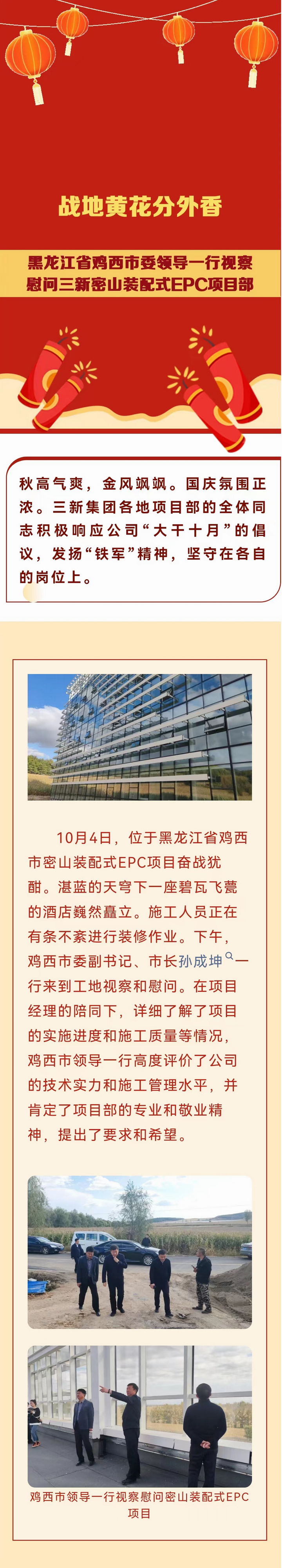 戰(zhàn)地黃花分外香——黑龍江省雞西市委領(lǐng)導(dǎo)一行視察慰問三新密山裝配式EPC項目