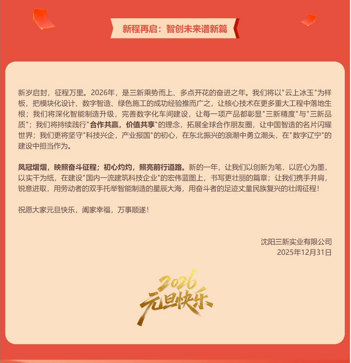 鳳冠彰碩果 新質啟華章——沈陽三新實業(yè)2026年元旦獻詞