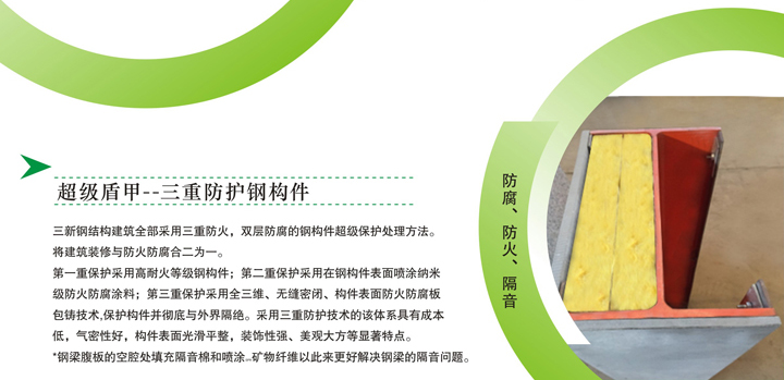 • 三新——綠色建筑領(lǐng)航者。新技術(shù),新工藝,新材料,時尚,環(huán)保,快捷